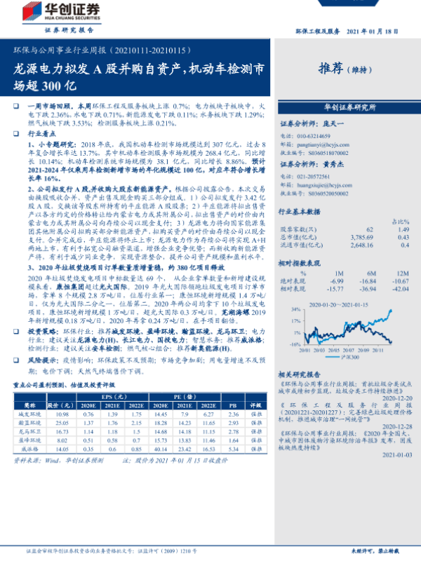 【华创证券】【20210118】环保与公用事业行业周报:龙源电力拟发A股并购自资产,机动车检测市场超300亿-18页