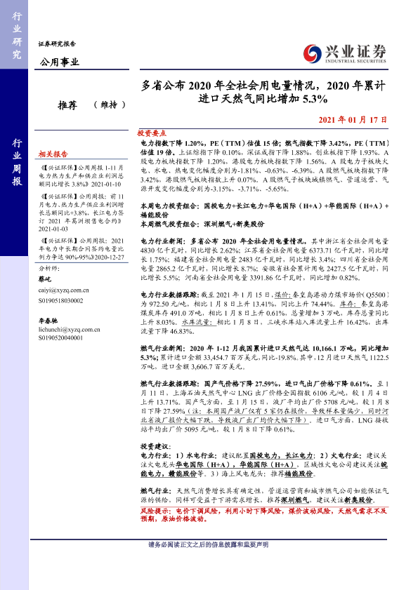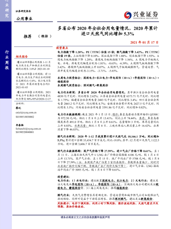 【兴业证券】【20210117】多省公布2020年全社会用电量情况,2020年累计进口天然气同比增加5.3%-12页
