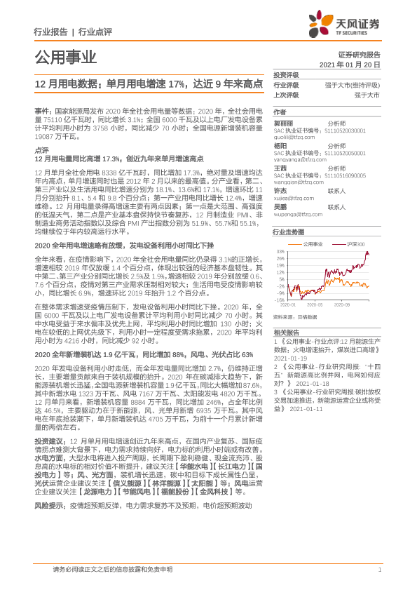 【天风证券】【20210120】12月用电数据:单月用电增速17%,达近9年来高点-2页