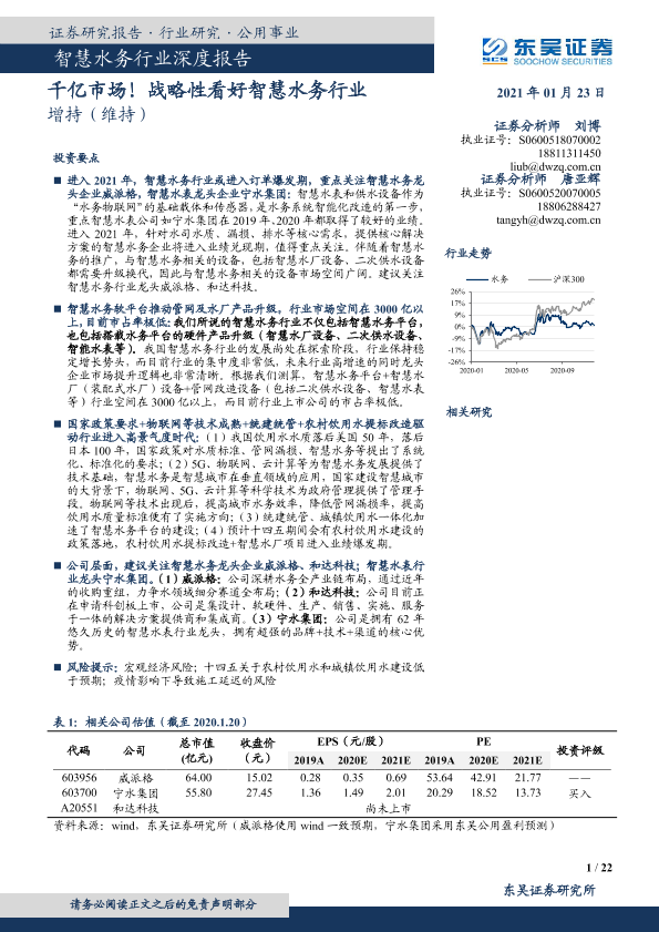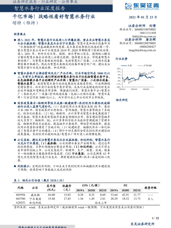 【东吴证券】【20210123】智慧水务行业深度报告:千亿市场!战略性看好智慧水务行业-22页
