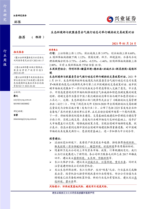 【兴业证券】【20210124】生态环境部与欧盟委员会气候行动总司举行碳排放交易政策对话-8页