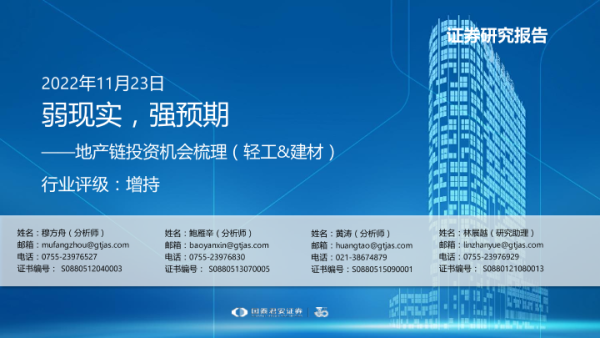 【国泰君安证券】【20221123】轻工&建材行业地产链投资机会梳理:弱现实,强预期-24页