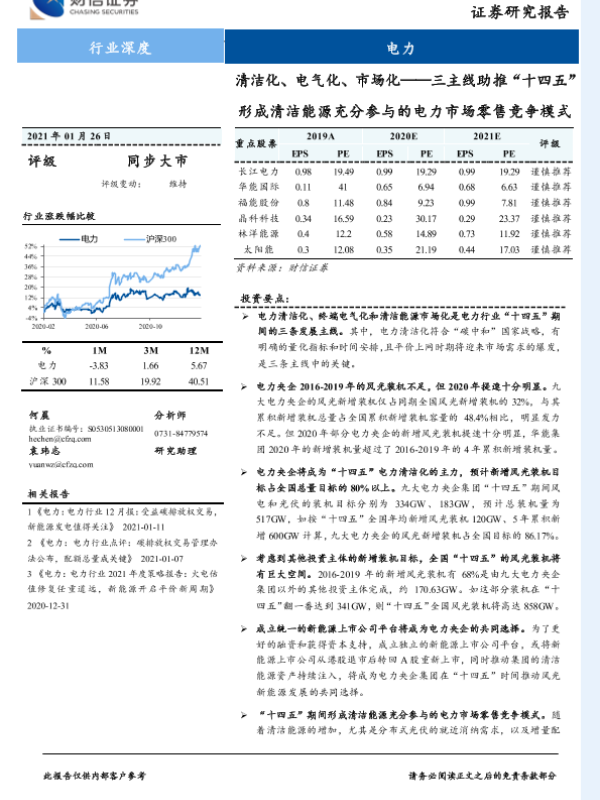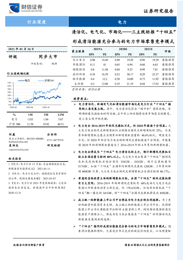 【财信证券】【20210126】电力行业深度:清洁化、电气化、市场化——三主线助推“十四五”形成清洁能源充分参与的电力市场零售竞争模式-27页