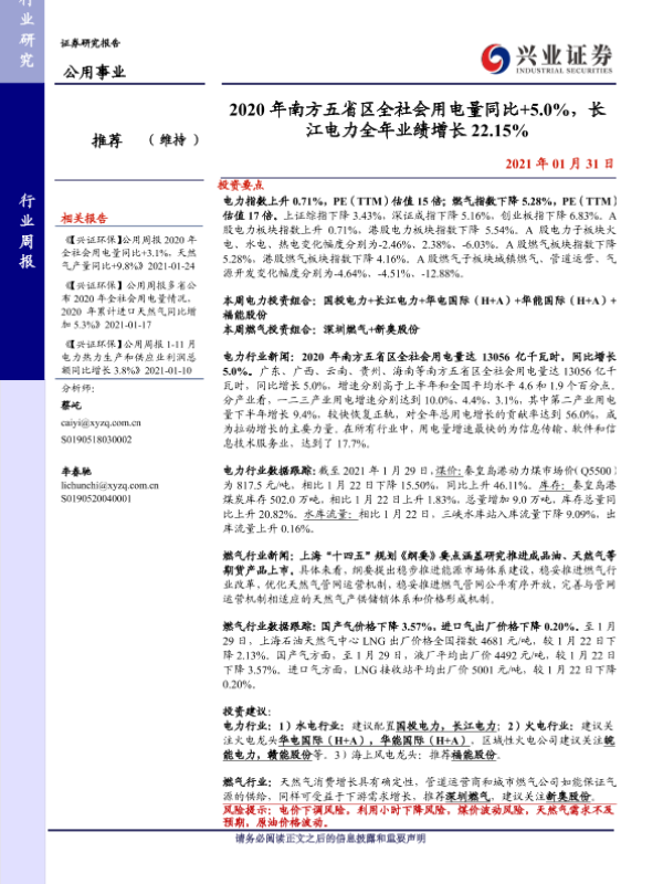 【兴业证券】【20210131】2020年南方五省区全社会用电量同比+5.0%,长江电力全年业绩增长22.15%-12页