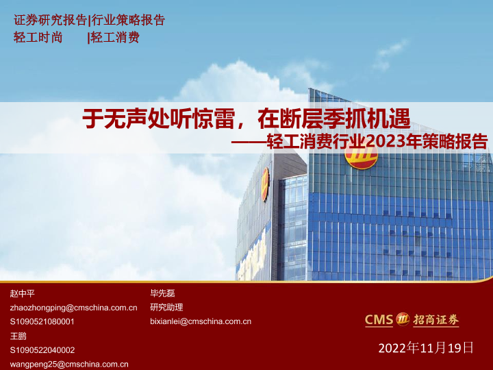 【海通证券】【20221119】轻工消费行业2023年策略报告:于无声处听惊雷,在断层季抓机遇-101页
