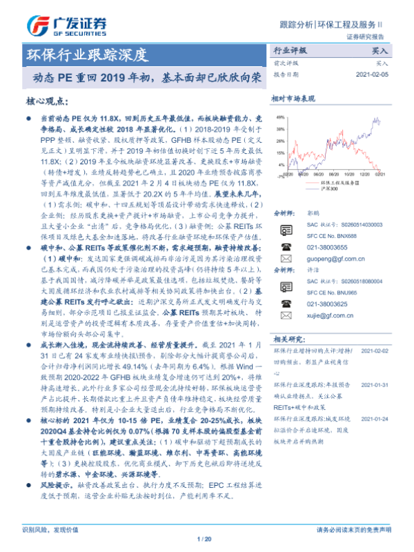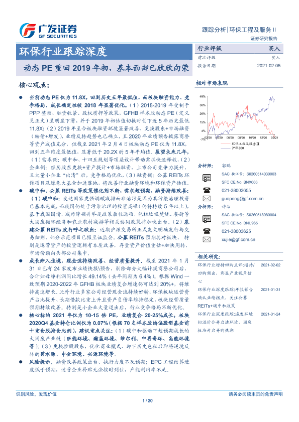 【广发证券】【20210205】环保行业跟踪深度:动态PE重回2019年初,基本面却已欣欣向荣-20页
