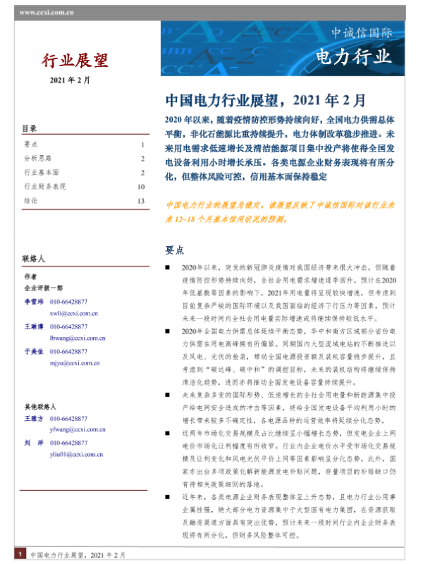 【中诚信国际】【202102】中国电力行业展望-2页