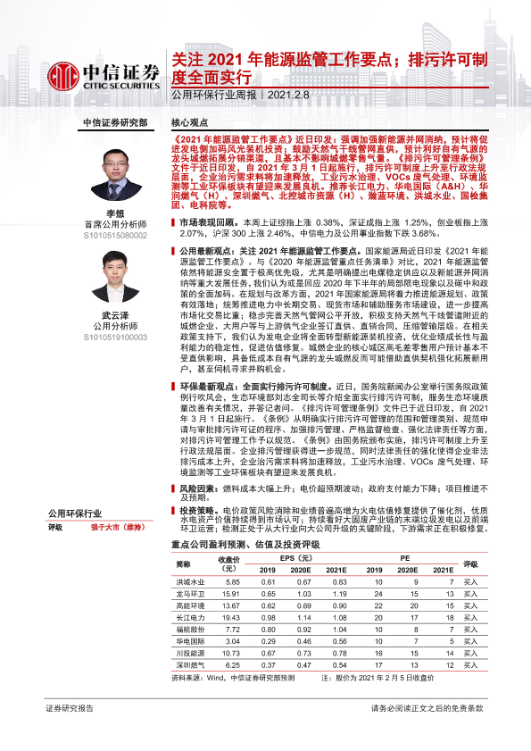 【中信证券】【20210208】公用环保行业周报:关注2021年能源监管工作要点;排污许可制度全面实行-13页
