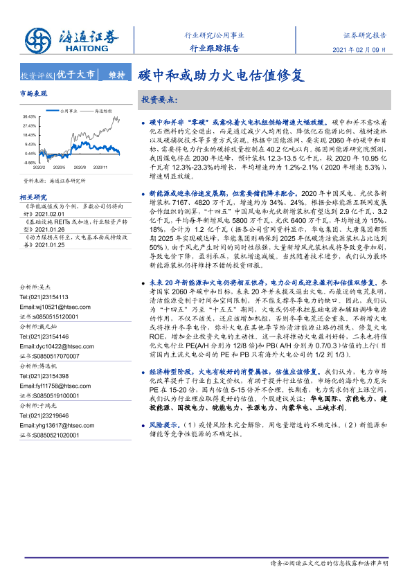 【海通证券】【20210209】公用事业行业跟踪报告:碳中和或助力火电估值修复-3页