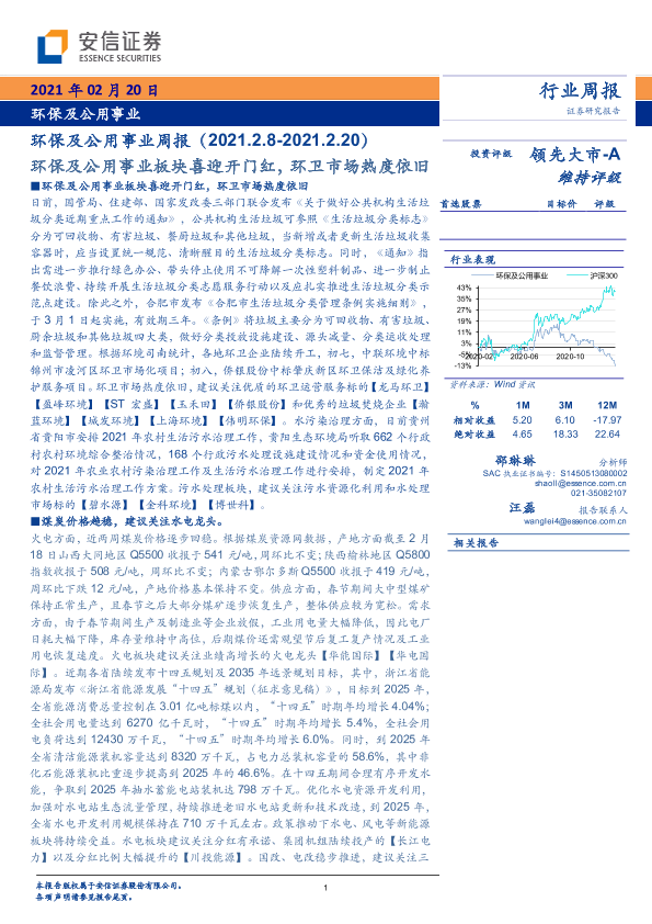 【安信证券】【20210220】环保及公用事业周报:环保及公用事业板块喜迎开门红,环卫市场热度依旧-17页