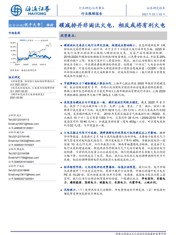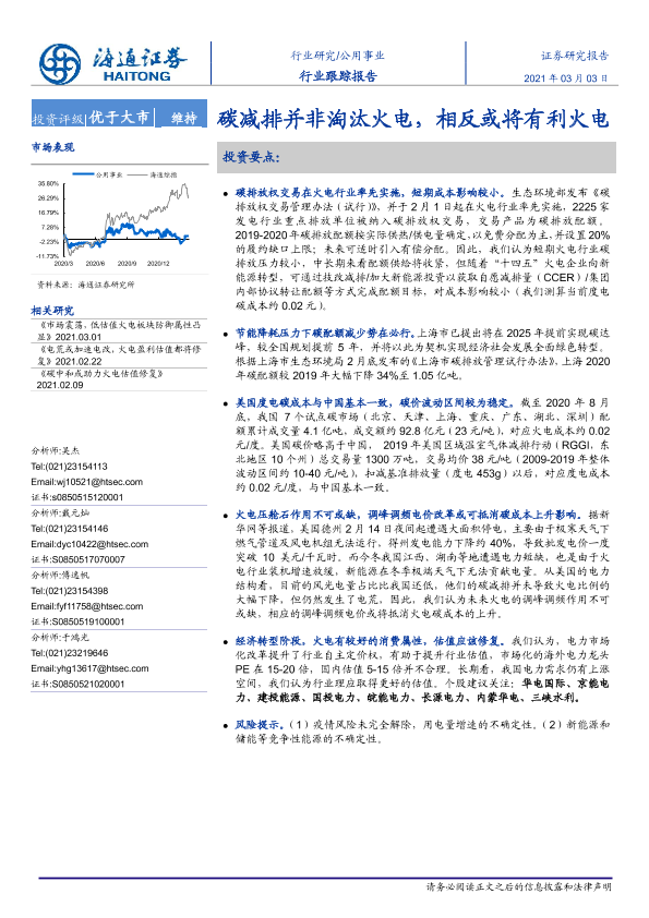 【海通证券】【20210303】公用事业行业跟踪报告:碳减排并非淘汰火电,相反或将有利火电-2页
