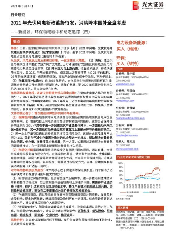 【光大证券】【20210304】2021年光伏风电新政蓄势待发,消纳降本国补全盘考虑-2页