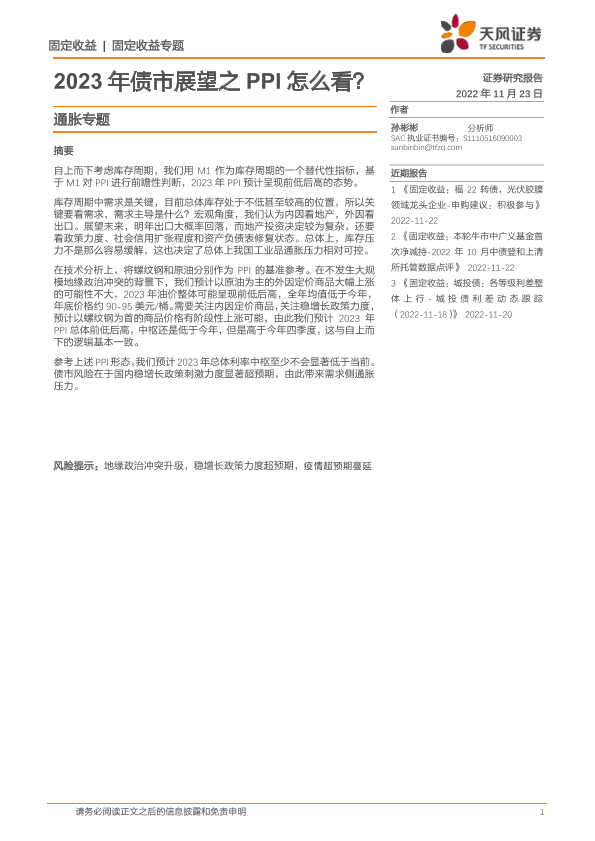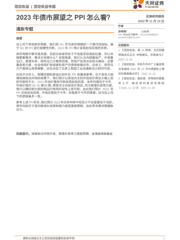 【天风证券】【20221123】2023年债市展望之PPI怎么看?-18页