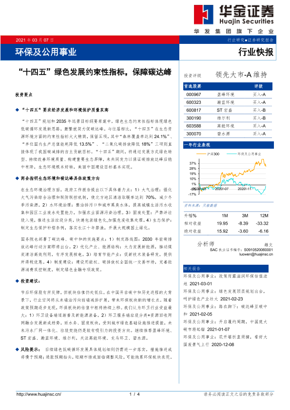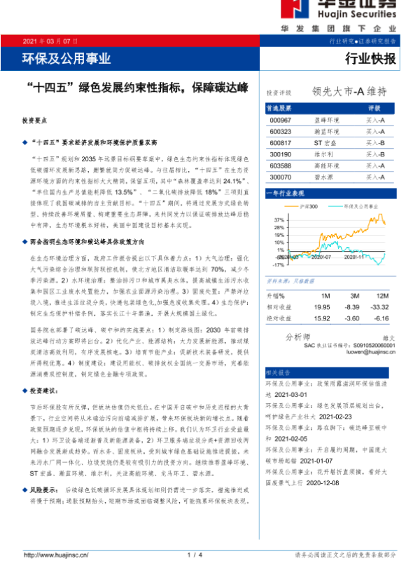 【华金证券】【20210307】'十四五'绿色发展约束性指标,保障碳达峰-4页