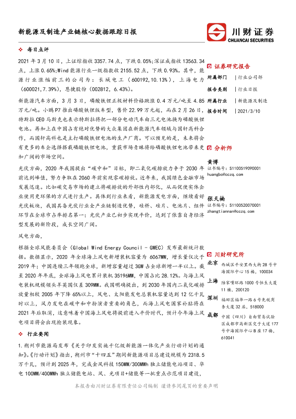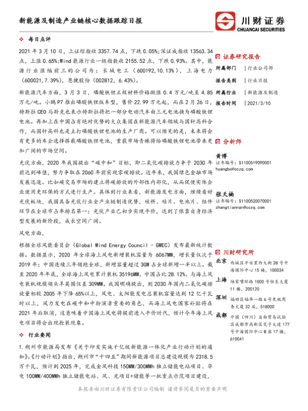【川财证券】【20210310】新能源及制造产业链核心数据跟踪日报-4页