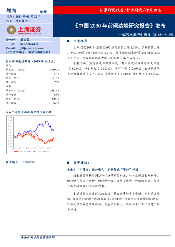 【上海证券】【20210322】燃气水务行业周报:《中国2030年前碳达峰研究报告》发布-6页