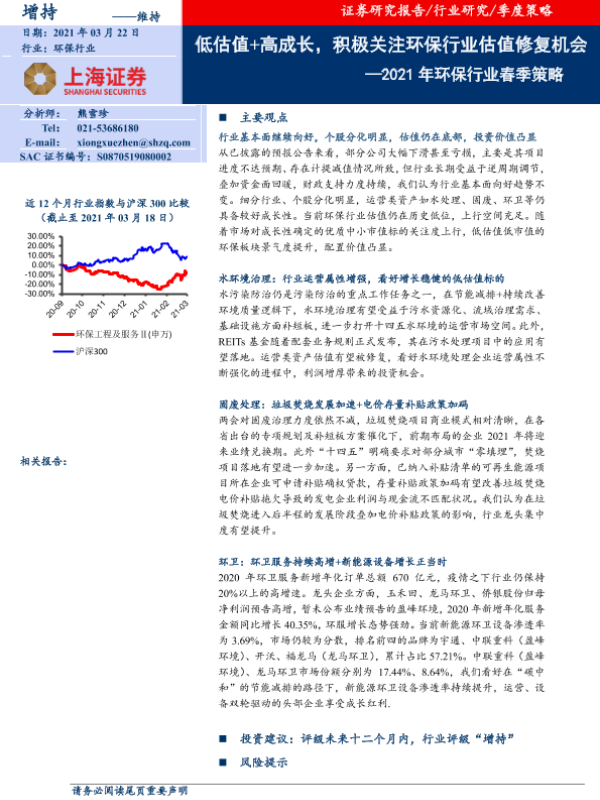【上海证券】【20210322】2021年环保行业春季策略:低估值+高成长,积极关注环保行业估值修复机会-24页