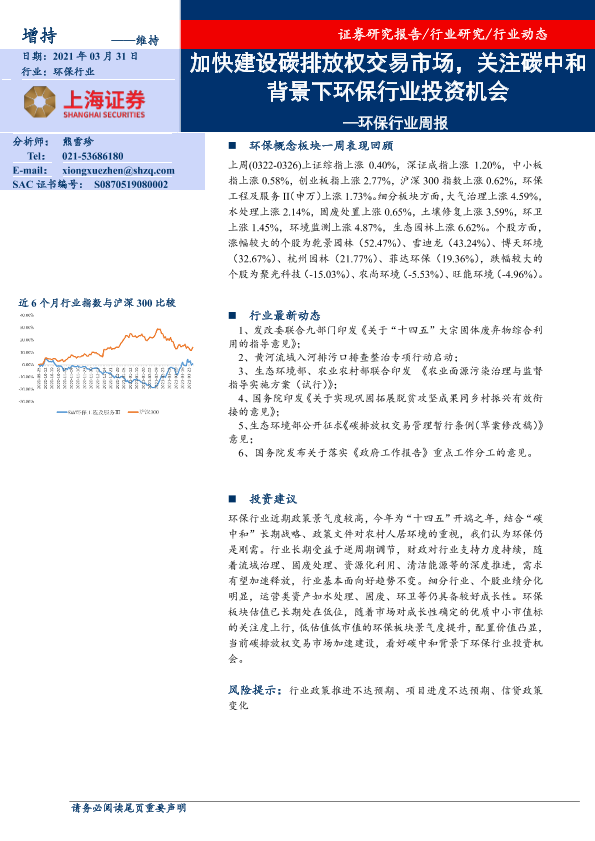 【上海证券】【20210331】加快建设碳排放权交易市场,关注碳中和背景下环保行业投资机会-8页