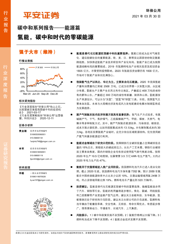 【平安证券】【20210330】碳中和系列报告——能源篇:氢能,碳中和时代的零碳能源-18页