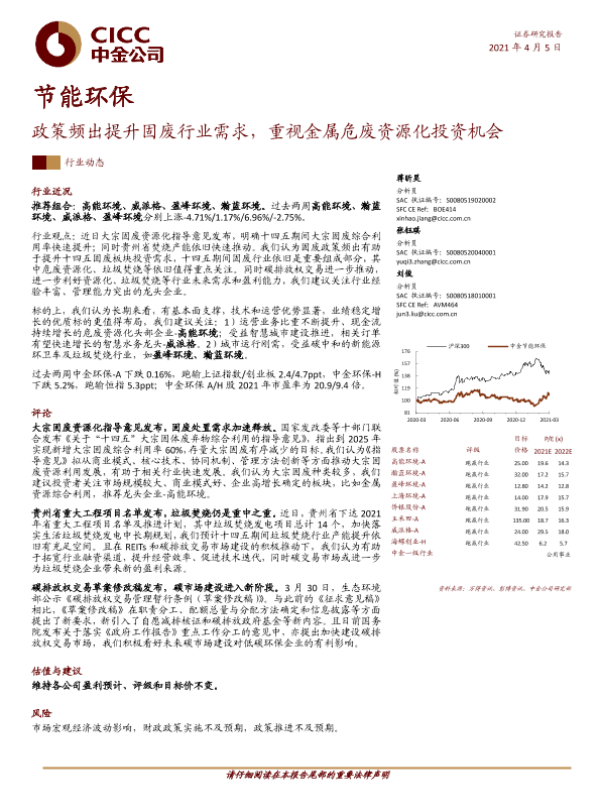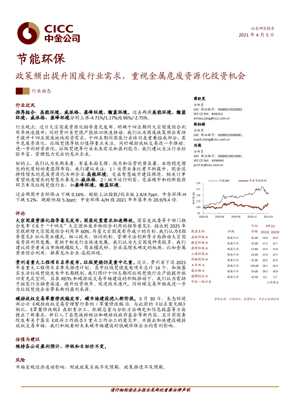 【中金公司】【20210405】节能环保行业动态:政策频出提升固废行业需求,重视金属危废资源化投资机会-12页