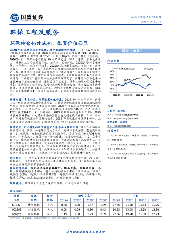 【国盛证券】【20210411】环保工程及服务行业周报:环保持仓仍处底部,配置价值凸显-14页