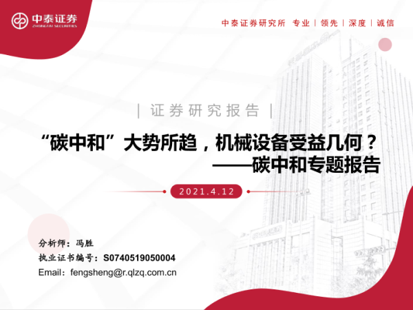 【中泰证券】【20210412】碳中和专题报告:“碳中和”大势所趋,机械设备受益几何?-33页