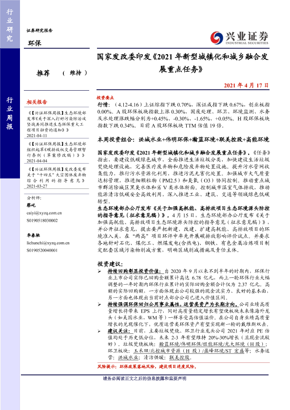 【兴业证券】【20210417】国家发改委印发《2021年新型城镇化和城乡融合发展重点任务》-9页