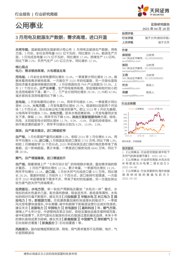 天风证券 电力热力燃气水生产 2021年 PDF 2.09 MB