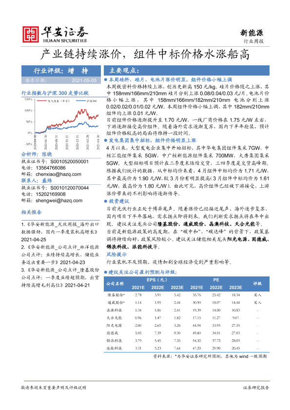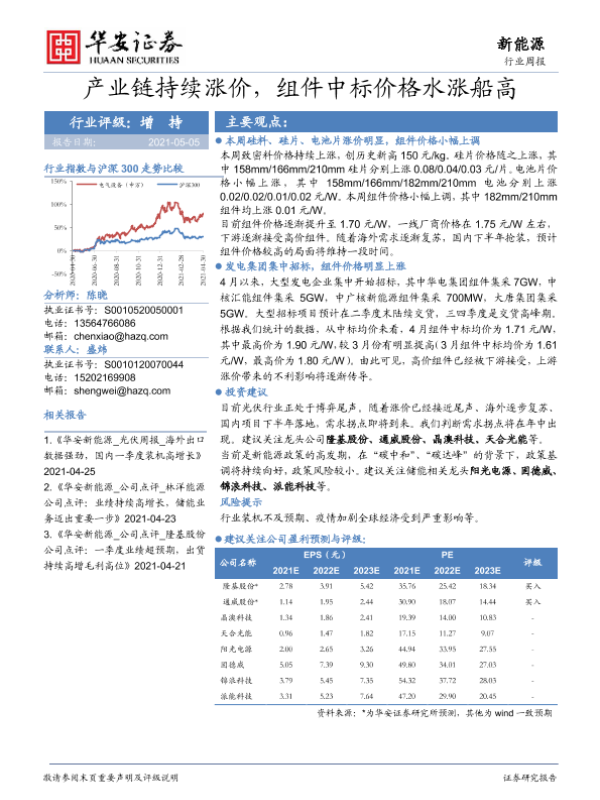 【华安证券】【20210505】产业链持续涨价,组件中标价格水涨船高-18页