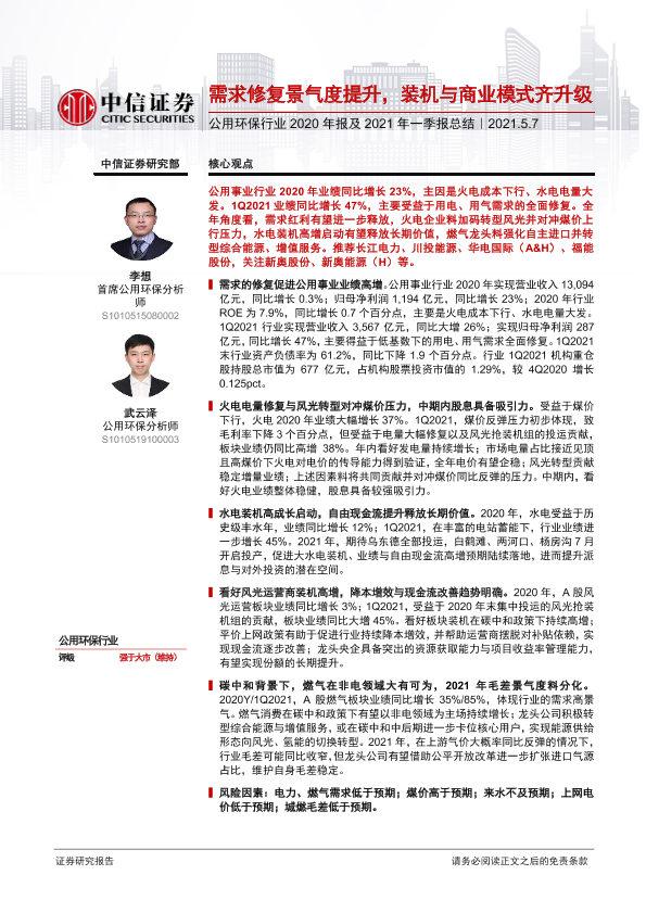【中信证券】【20210507】公用环保行业2020年报及2021年一季报总结-21页