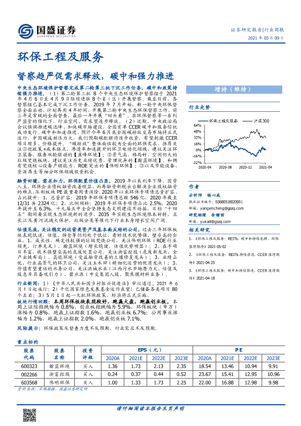 【国盛证券】【20210509】环保工程及服务行业周报:督察趋严促需求释放,碳中和强力推进-12页