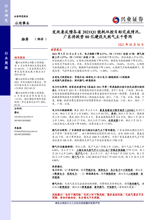 【兴业证券】【20210606】发改委反馈各省2021Q1能耗双控目标完成情况,广东将投资80亿建设天然气主干管网-13页