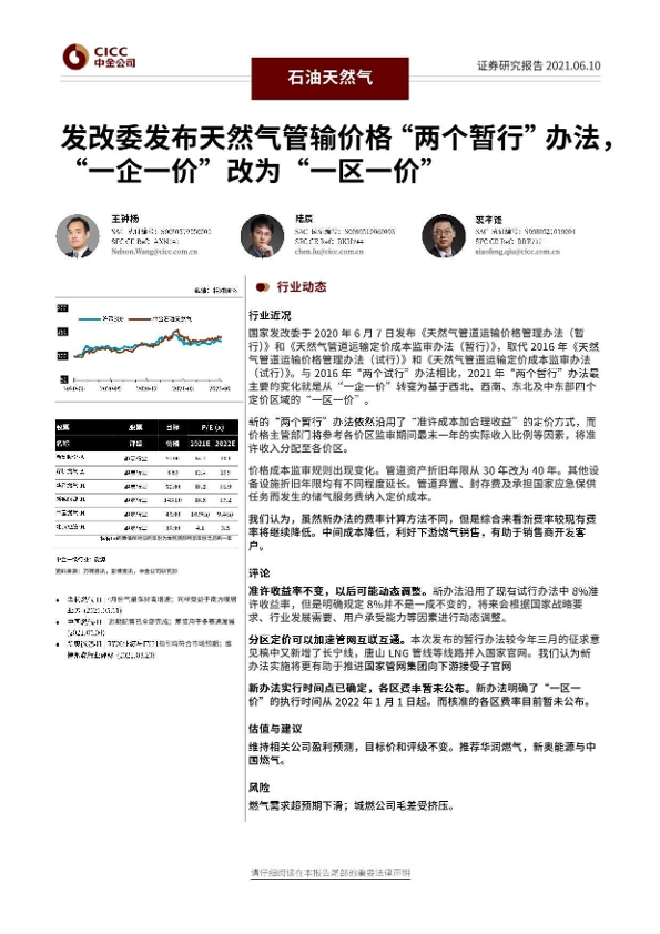 【中金公司】【20210610】发改委发布天然气管输价格'两个暂行'办法,'一企一价'改为'一区一价'-5页