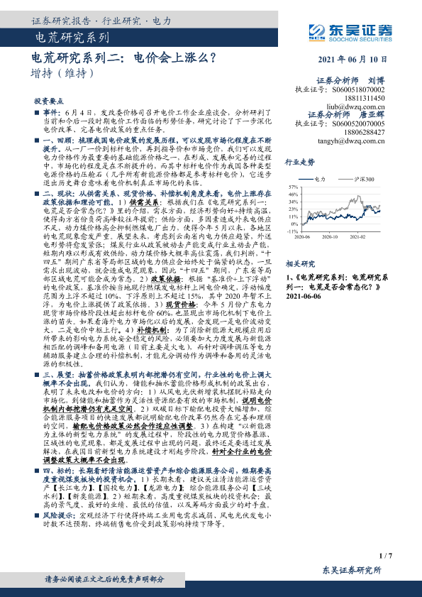 【东吴证券】【20210610】电荒研究系列二:电价会上涨么?-7页
