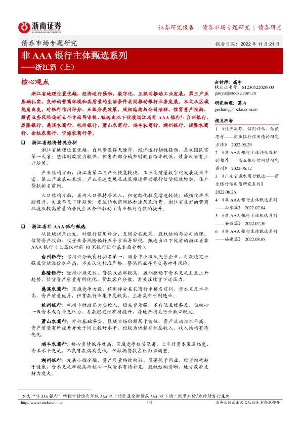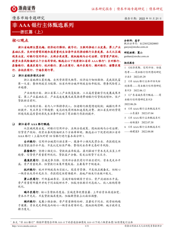 【浙商证券】【20221121】非AAA银行主体甄选系列:浙江篇(上)-31页