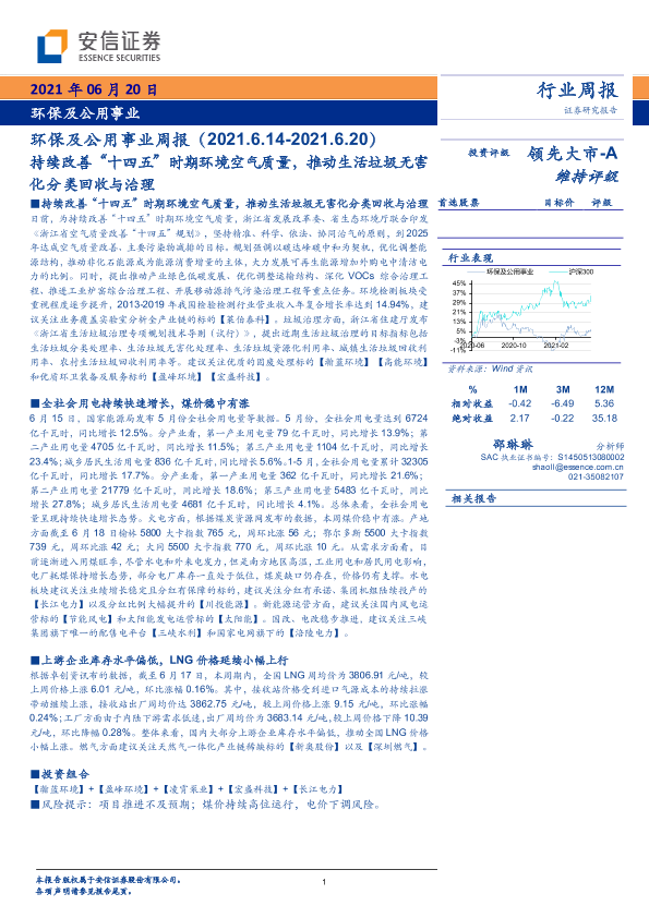 【安信证券】【20210620】持续改善“十四五”时期环境空气质量,推动生活垃圾无害化分类回收与治理-16页
