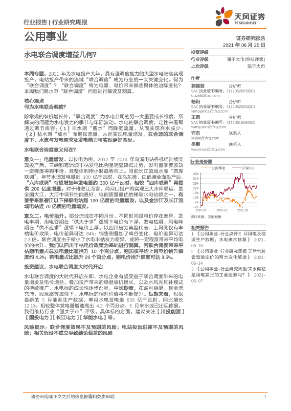 【天风证券】【20210620】公用事业行业研究周报:水电联合调度增益几何?-14页