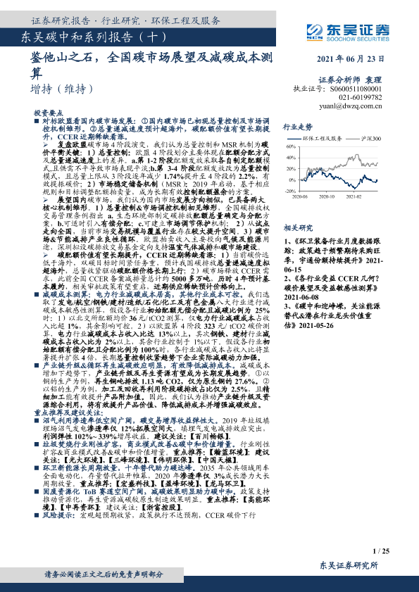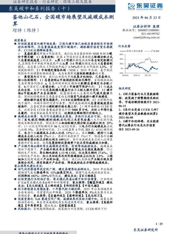 【东吴证券】【20210623】鉴他山之石,全国碳市场展望及减碳成本测算-25页