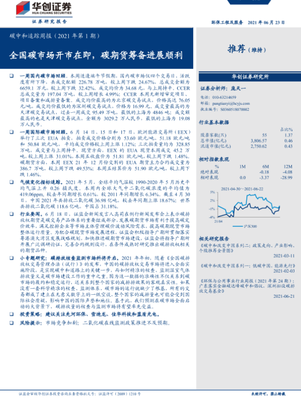 【华创证券】【20210623】全国碳市场开市在即,碳期货筹备进展顺利-19页
