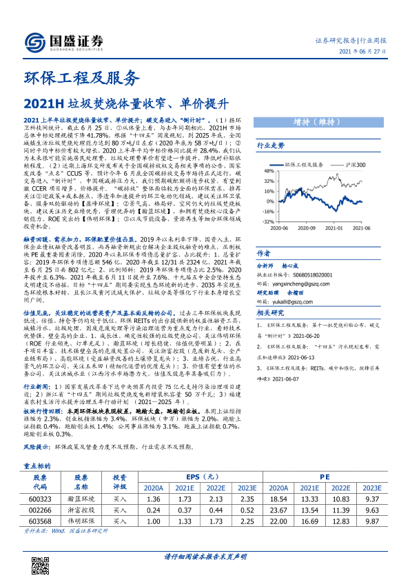 【国盛证券】【20210627】环保工程及服务行业周报:2021H垃圾焚烧体量收窄、单价提升-15页