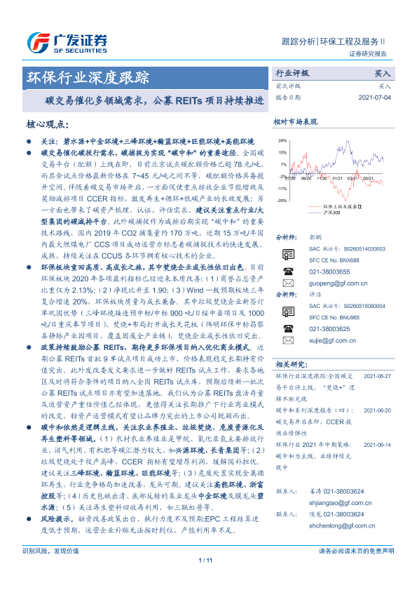 【广发证券】【20210704】环保行业深度跟踪:碳交易催化多领域需求,公募REITs项目持续推进-11页