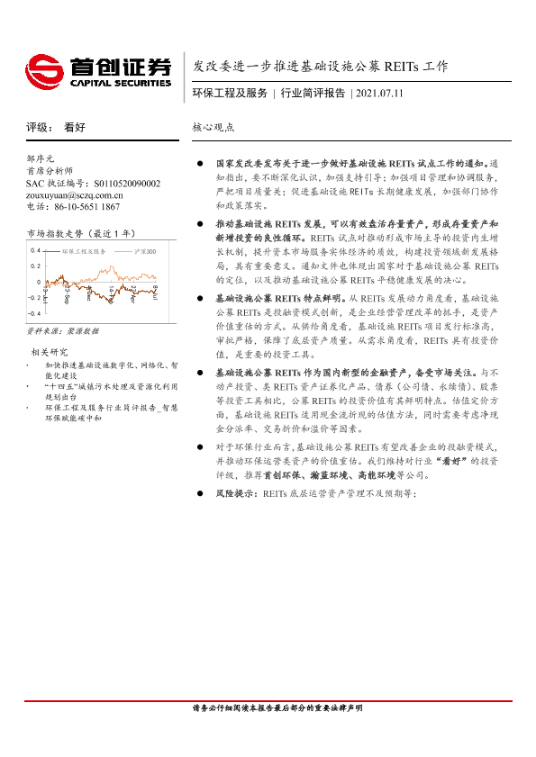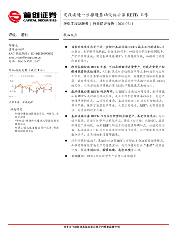 基础设施REITs 投资评级 政策分析 环保工程 金融服务