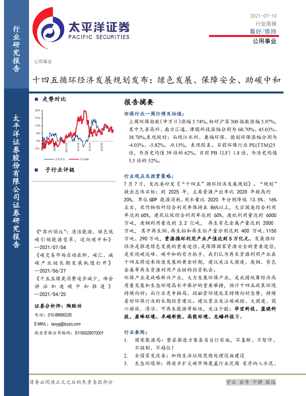 【太平洋证券】【20210710】十四五循环经济发展规划发布:绿色发展、保障安全、助碳中和-12页