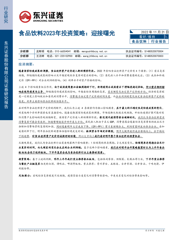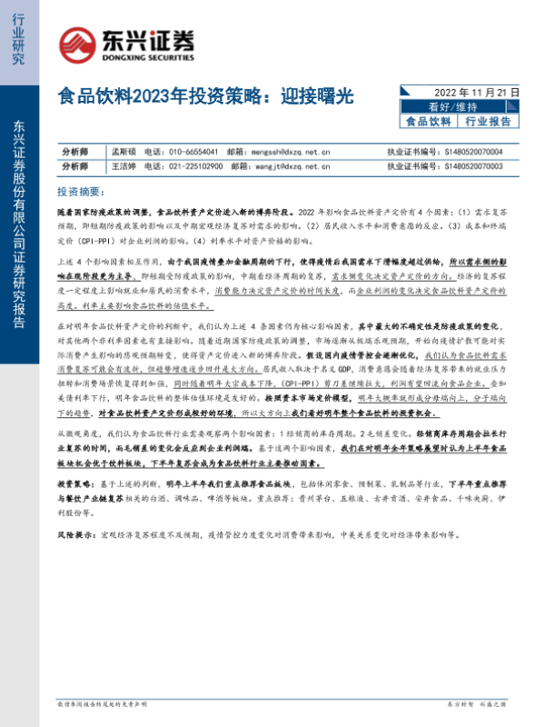 【东兴证券】【20221121】食品饮料行业2023年投资策略:迎接曙光-15页
