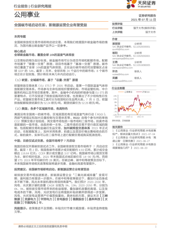公用事业 新能源 环境保护 碳市场 碳排放交易