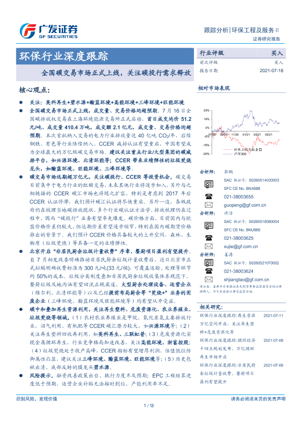 【广发证券】【20210718】全国碳交易市场正式上线,关注碳投行需求释放-13页
