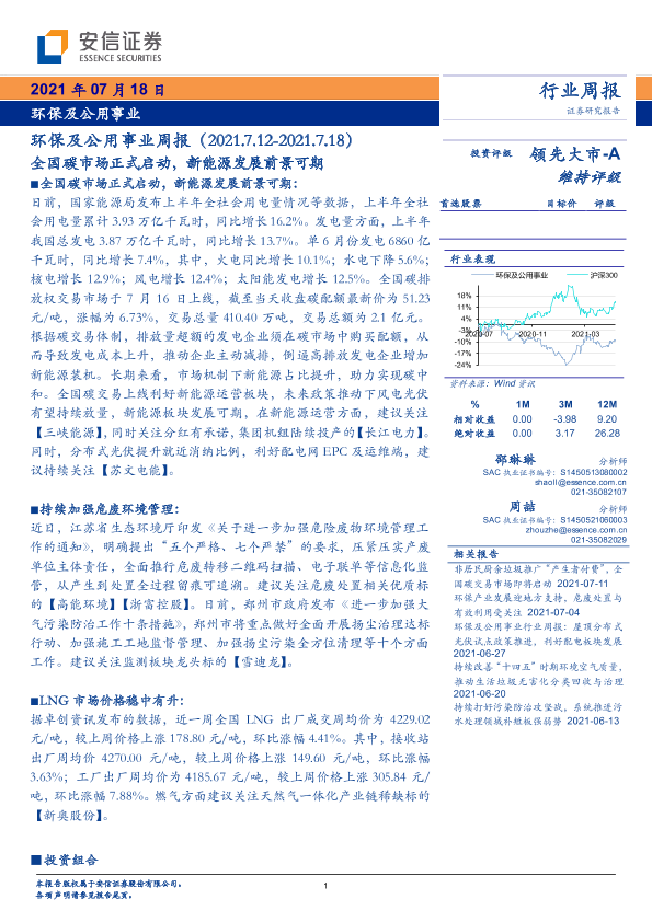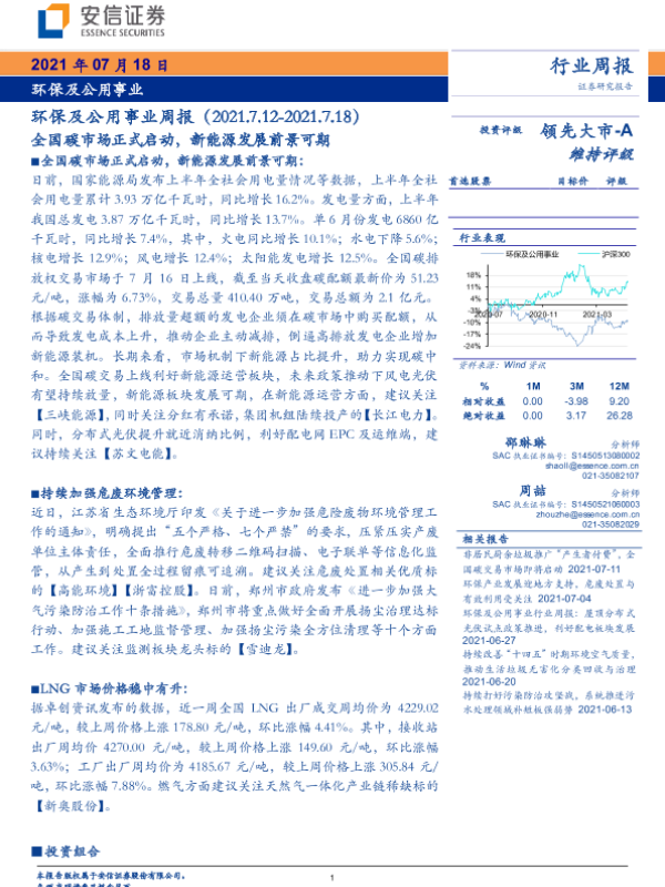 【安信证券】【20210718】环保及公用事业周报:全国碳市场正式启动,新能源发展前景可期-18页