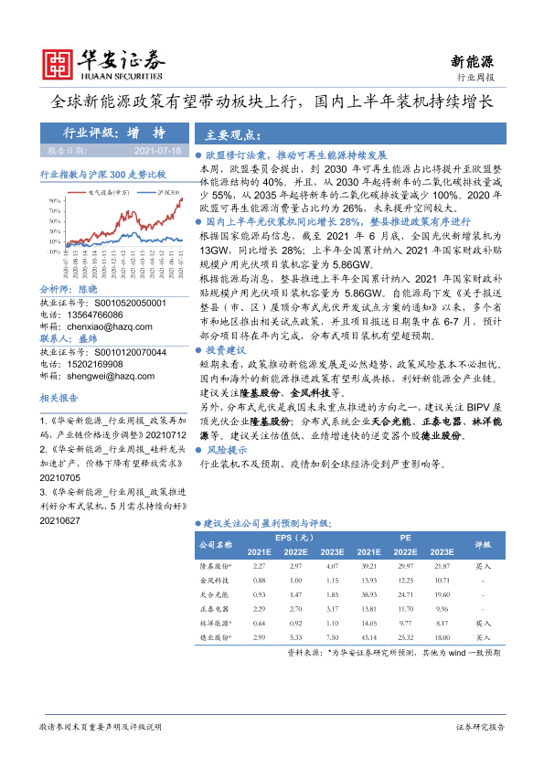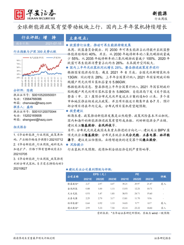 【华安证券】【20210718】全球新能源政策有望带动板块上行,国内上半年装机持续增长-16页