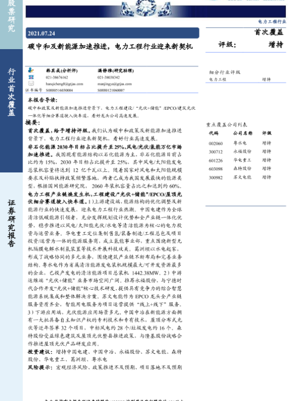 【国泰君安证券】【20210724】电力工程行业:碳中和及新能源加速推进,电力工程行业迎来新契机-33页
