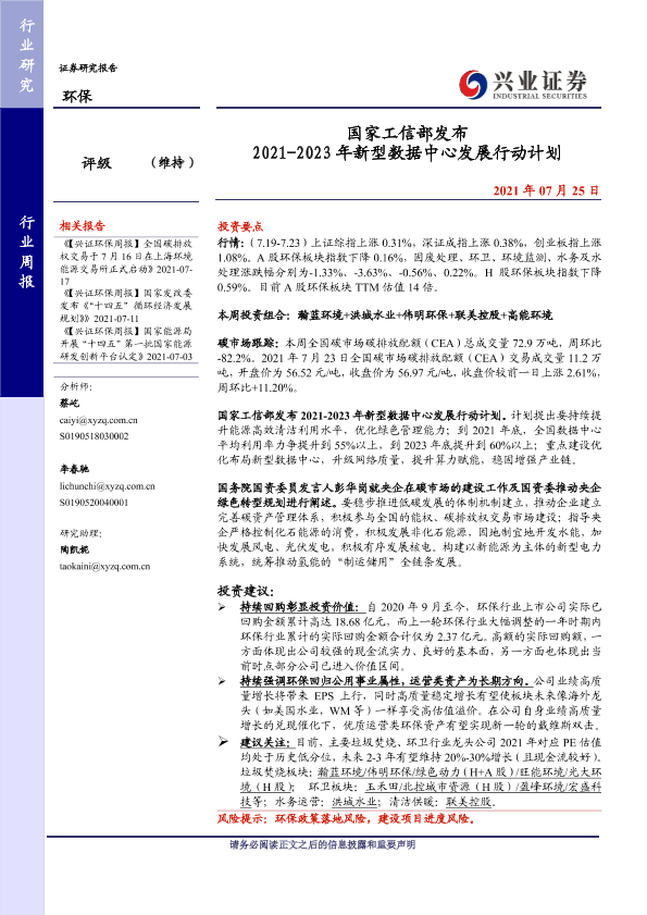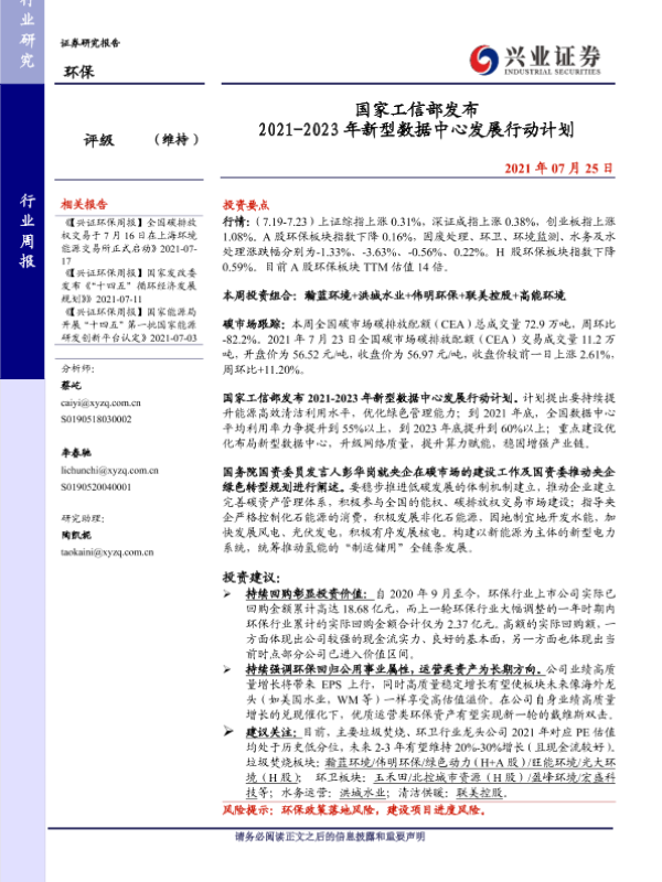 政策发布 数据中心 环保行业 碳市场 绿色发展